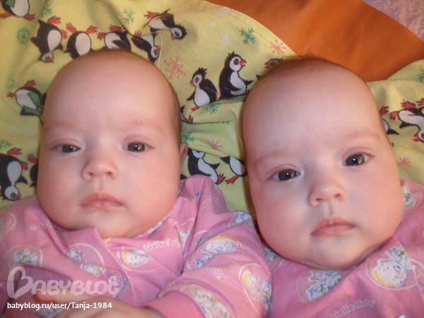 Мамы двойняшек на нашем сайте. знакомимсяЗдравствуйте!!! Принимайте пополнение :)! Мои крошки родились 15.11.2011 в 35 недель путем экс. Александра ( Сашенька Пташенька) старшенькая вес 2400 рост 44 см очень серьезная, менее капризная, вообщем ведет себя как старшая сестра. Анна ( Анюточек Цветочек) младшенькая вот и ведет себя соответственно, наша маленькая круть-верть всегда в движении :) вес 2100 рост 43 см. Я бы разместила фото, но почему то не получается :(