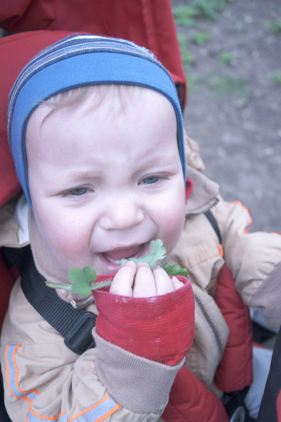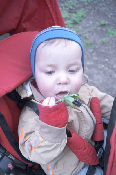 А может это юный ботаник и проверяет действие ядовитых растений на себе:))))))))))