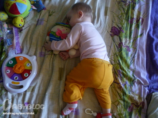 Пробовала Аринка на вкус игрушку,так и уснула с ней во рту))))))))