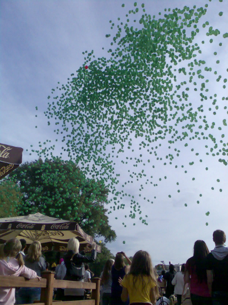 в воскресенье пока малые спали я наткнулась в интернете на объявление о запуске шаров.Запуск должны занести в книгу рекордов Гинеса.5000 шаров вы представте красотень какая!!!!!
