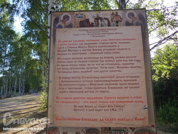 В этот жаркий день народу оказалось очень много и далеко не все приехали посмотреть на святыню, неприятно было смотреть когда человек отдаёт поклоны перед крестом ( а их там четыре), а в пяти метрах весёлая компашка пивко распивает(( Хотя по дорожке к озеру развешаны предупреждающие плакаты.