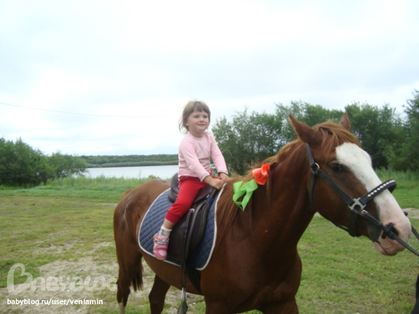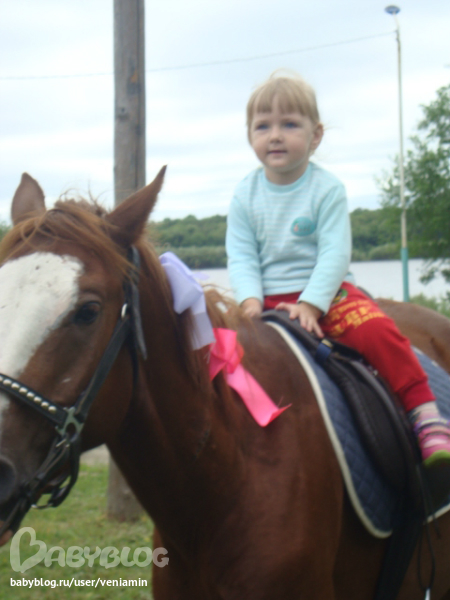 Вообще-то Анастасия трусишка та еще, а вот на лошадку без разговоров залезла!!!!