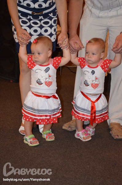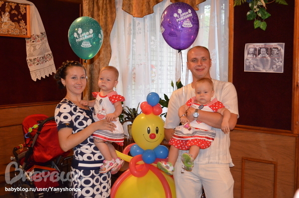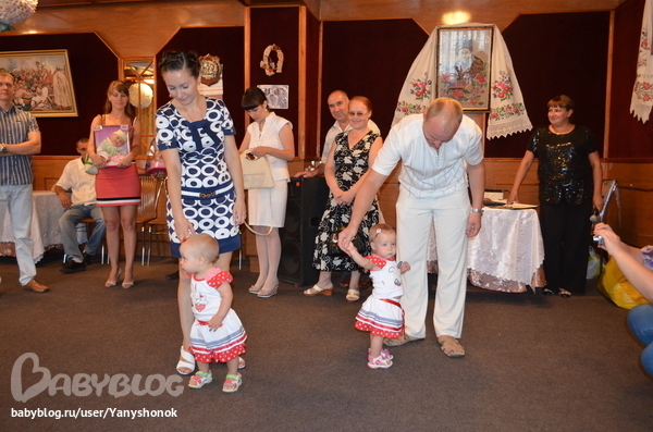 Когда нам, родителям, предоставили возможность сказать пожелания нашим дочкам, я не смогла выдавить не слова, меня поглотили слезы, я как ненормальная расплакалась, сама не знаю почему, просто посмотрела на своих маленьких зайчат и не могла поверить, что мы выдержали этот самый тяжелый первый год...И валерьянка не помогла, выпитая дома, ревела...Спасибо мужу, толконул речь красивую, хотя он у меня не красноречив, но здесь нашел что сказать. Ну а я, успокоившись, добавила к его словам еще свои пожелания!
