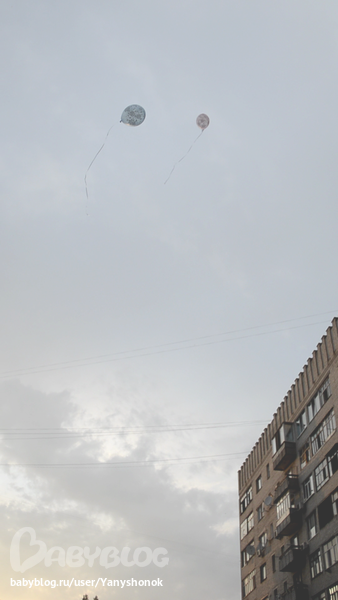 Провожание 1 года жизни пусканием шаров в небо. Это была моя инициатива ввести в нашу семейную традицию такое действие на каждый день рождения наших детей. В 2 года в небо улетят уже 4 шарика...