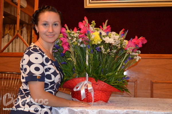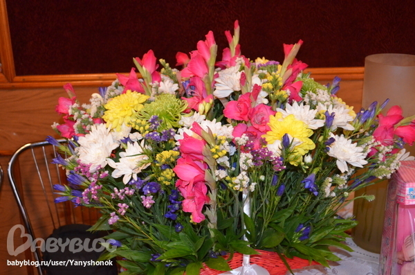 Внешний вид заведения оставляет желать лучшего, но не пугайтесь, в средине гораздо красивее! Этот шикарный букет нам подарили кумовья, я так полагаю, что он предназначался мне с девочками :)