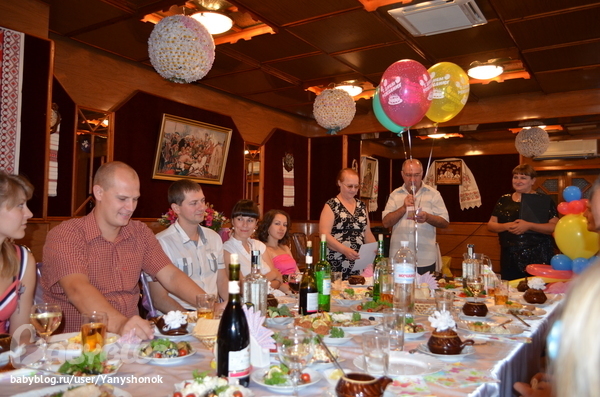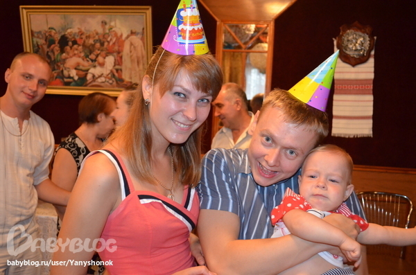 Не смотря на то, что моя младшенькая Златочка была в болезненном состоянии мы все же отметили Годик, как задумали, в кафе с гостями. Мы собрали только самых близких нам людей-это мои родители, моя сестра с семьей и кумовья со своими мужьями/женами. Всего 16 человек (вместе с нами). Дети пробыли вместе с нами около 3-х часов и благополучно отправились домой с бабушкой и дедушкой, а мы с кумовьями продолжили застолье и танцы! Что я могу сказать-праздник удался! Я довольна поведением своих девчонок, правда из-за вялости Златика она почти все время пробыла на моих руках, но держалась молодцом! Надарили нам подарков, нажелали всего доброго и лучшего, мы натанцевались, наелись и напились и уставшие пришли домой к уже спящим детям, которых благополучно уложила бабушка, за что ей низкий трехкратный поклон! От праздника остались лишь положительные эмоции-а это самое главное! Наш праздник вела ведущая, поэтому было вдвойне веселей!