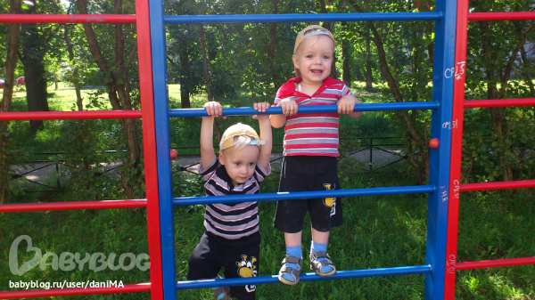 Парнишки то да :))) мы только пришл на эту площадку, там парнишки были лет так по 7-8, и вот они и там и тут полазили, а этим все надо повторить.