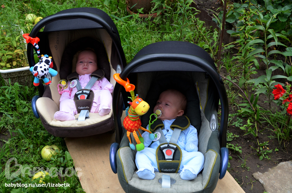 Ночью дети спали в коляске с нами в комнате, а днем если дождя не было то жили на огороде либо в люльках от коляски либо в автокреслах.