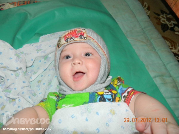Примерили шапки (опять же на Марка), в них выписывались из род.дома, самое то=)) Теплые меховые тапки бабушка нам привезла с юга, ну а на холода прикупим валеночки. Сапожки приобретем, когда захотим пойти.
