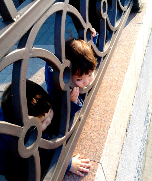 Две обезьянки...залезли в ограждение на набережной...хорошо, что головы не застряли =))