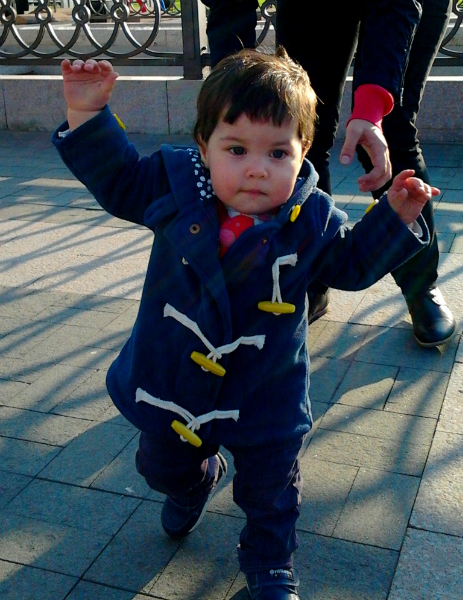 Софи, глядя на сестру...проходит по метров 5 и снова на коленки =)))