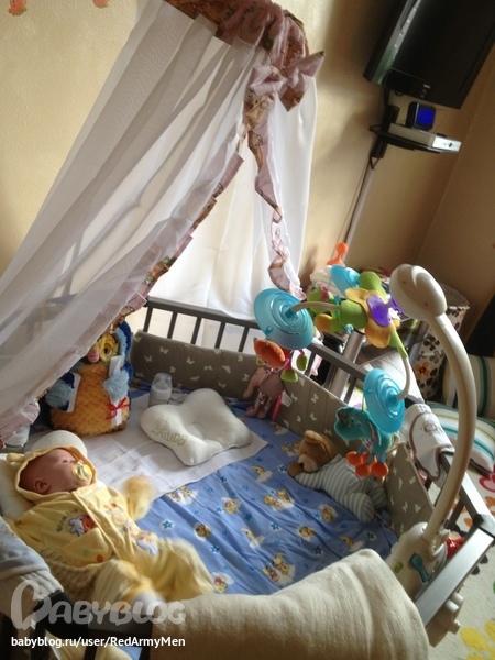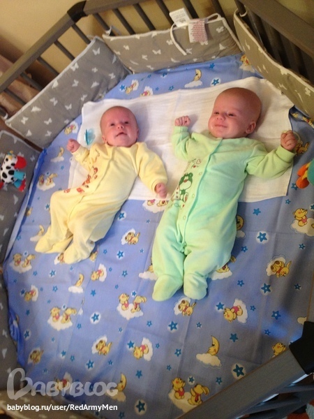 "А щас мы вам покажем наши новые гаджеты - это 2 кресла и нашу новую кровать. Так как мы любим спать с братом вместе, у нас теперь есть, одна большая кроватка-манеж и нам оооочень нравиться храпеть друг-другу на ухо. Но обо всем по порядку"))