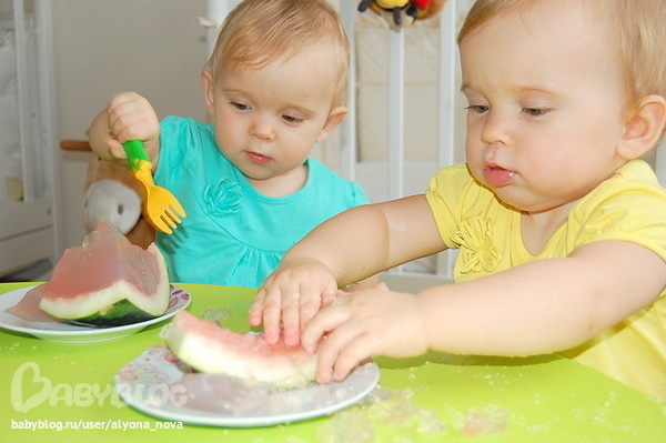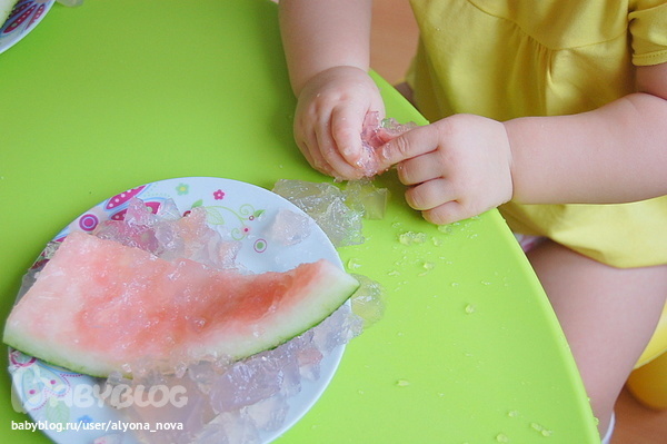 Те, кто постарше затею оценили. Самые маленькие есть особо не стали, а вдоволь поглумились над моими кулинарными затеями. У нас получились сенсорные арбузные дольки)