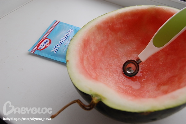 Вместе с детьми и для детейНа мой взгляд, это интересная идея для детского праздника. Но мы случая ждать не стали, тем более в многодетной семье, как известно, праздник каждый день)))) Сделала для домашних вот такое желе в арбузной корке.