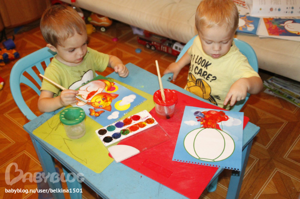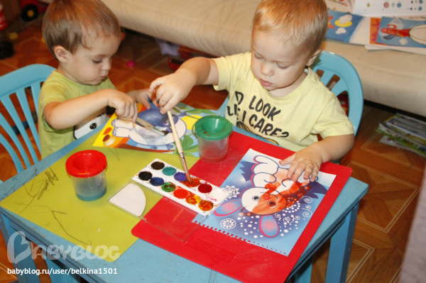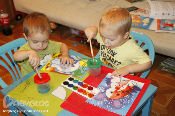 Двойняшки от 1 года до 3-хДавненько не брали мы в руки кисти и краски, моей нервной системы просто на это хватало.... т.к. в краске оказывалось все что только можно...