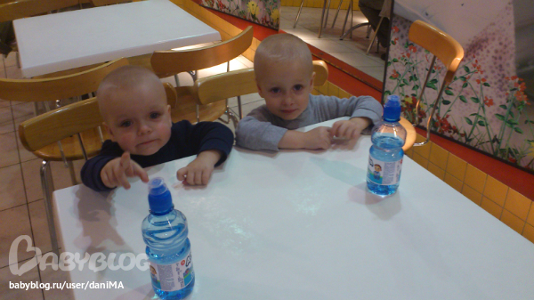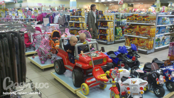 Наконец-то мы вышли в садик. И вот пошли по магазинам покупать все по списку. Пока я бегала от карандашей к бумаге и обратно, малявки развлекались :))))
