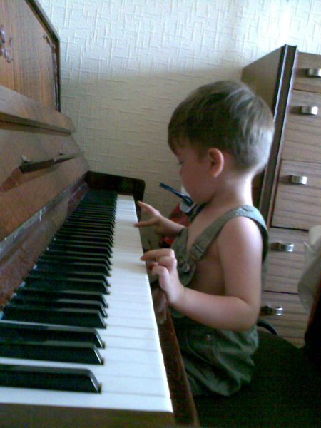 Обожает играть на пианино и вообще на интструментах а если они еще и не игрушечные это верх наслаждения.