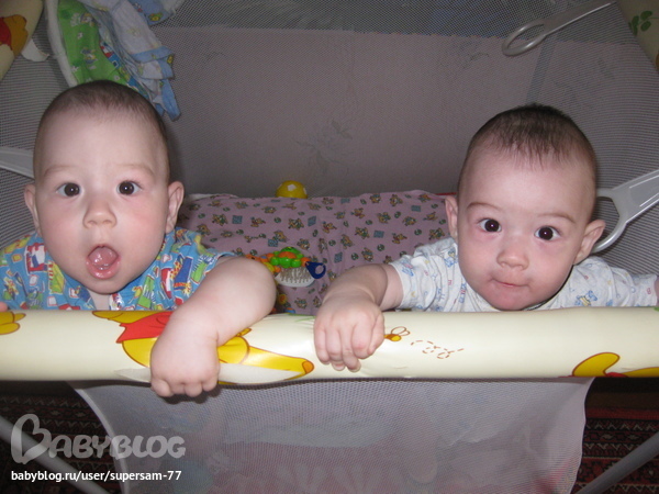 Двойняшки до 1 годаЗдравствуйте девочки!!!Уехали мы в июне в деревню,а приехали в октябре...Нас подзабыли наверно,а мы по всем скучали!Очень рады быть с вами снова.Вот какие мы были..