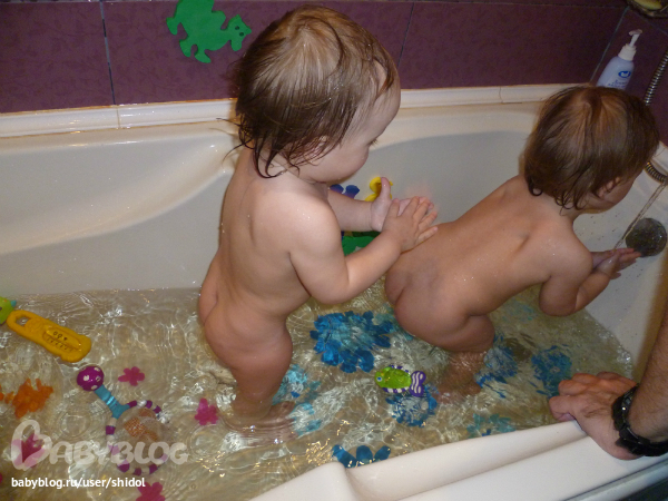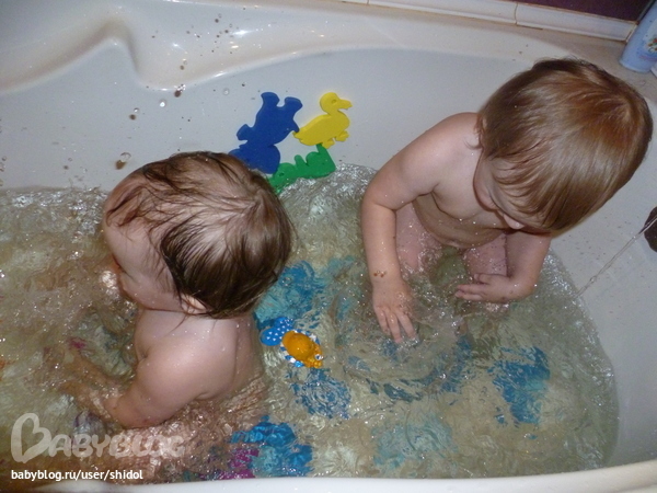 Мы вот тоже 23 ноября первый раз в ванну залезли!( т.к. живем в деревне моемся в бане в тазиках)) Ездили к сестре и на ночь с ней решили их намыть! Пацаны были в восторге! Кран это прооосто мега интересная фиговина! Мы мылись без ковриков и все было супер, не считая того что мы безумно любим есть пену,и пытаемся поймать ее сразу ртом