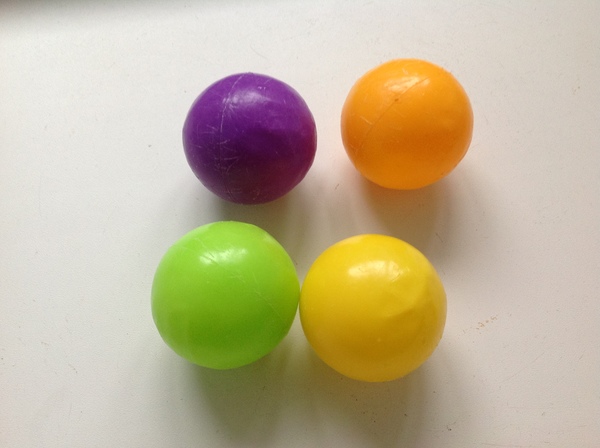 А нельзя приспособить шарики для пинг-понга? Они вроде сейчас и разных цветов бывают и стоят копейки.
