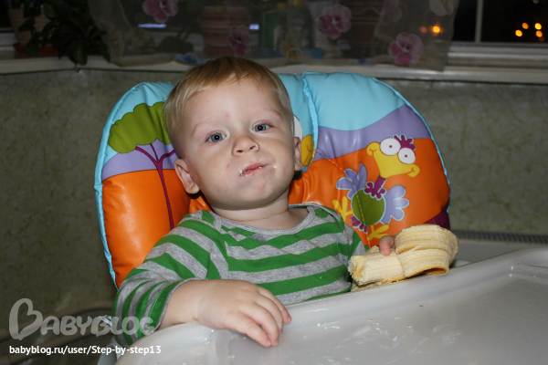 Тима очень любит поесть сам, ну т.е. не поесть а ложку подержать и проливать, но главное что есть стремление