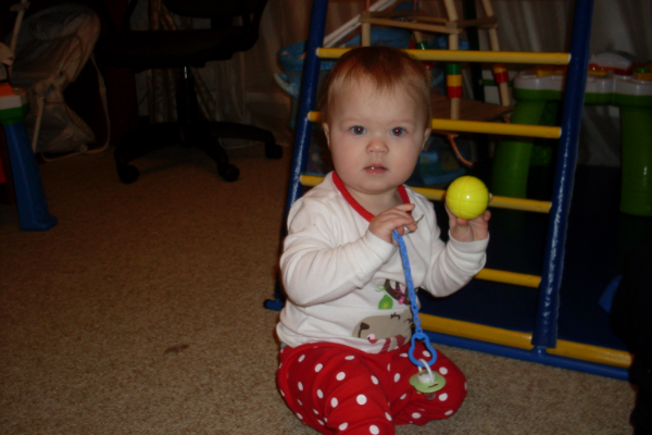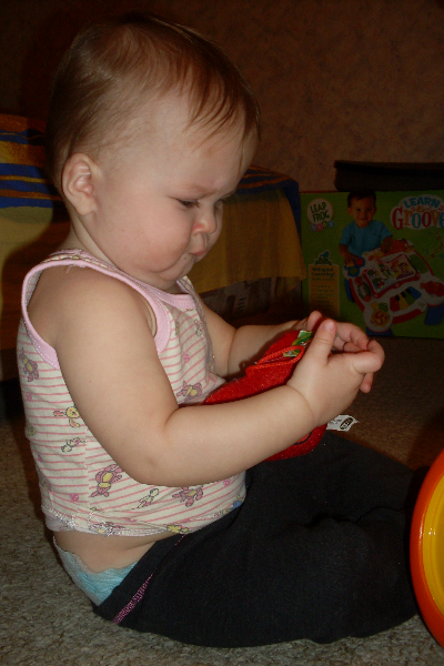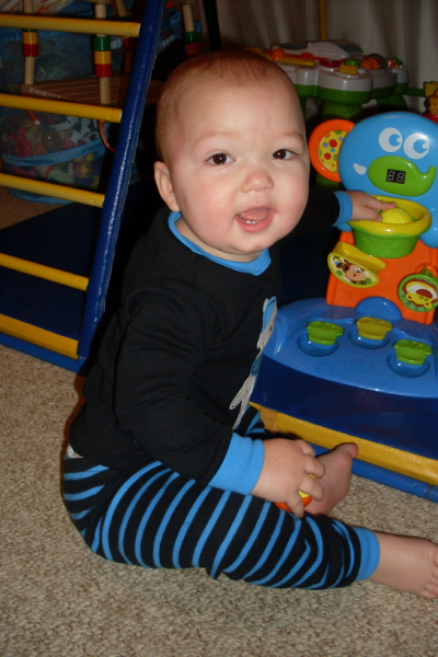 А так кидаем шарики, обожаем горшочек, летает так, что просто диву даюсь как он еще поет песенки! Начали потихоньку собирать пирамидку, книжки все рвут либо едят, научились наконец-то спускаться с дивана, наши падения прошли!!!!!!!