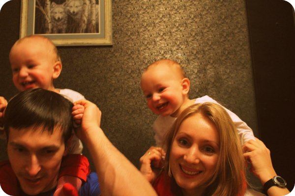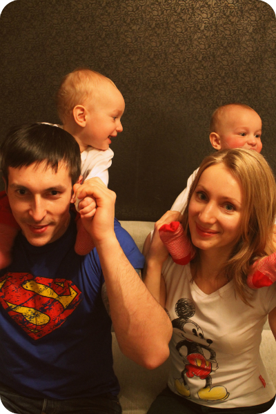 Вообще они вели себя прекрасно, не капризничали, никого не испугались, очень радовались вниманию. По компу шло слайд-шоу с их фотками от 0 до года под детские песни. Так они сидя в тульчиках стали пританцовывать, махать руками и головами))) особенно Святослав разошелся, не ожидала от него.