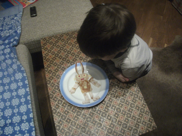 когда Мишка был у бабушки я сделала ему робота)