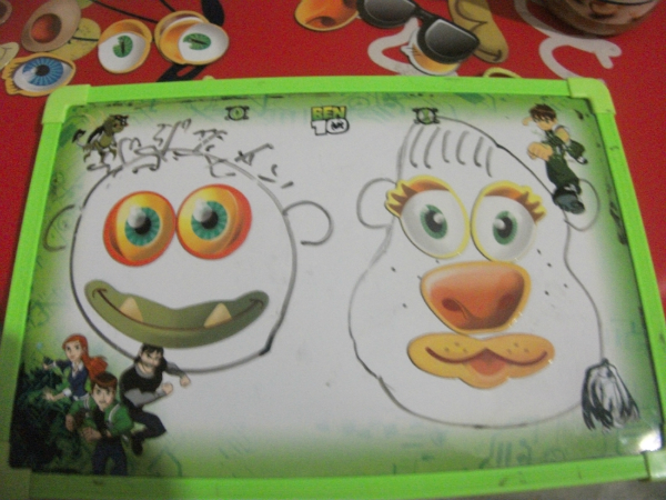 Еще у нас есть доска на которой мы рисуем и мы ее приспособили для магнитных глаз,носов и т.д.