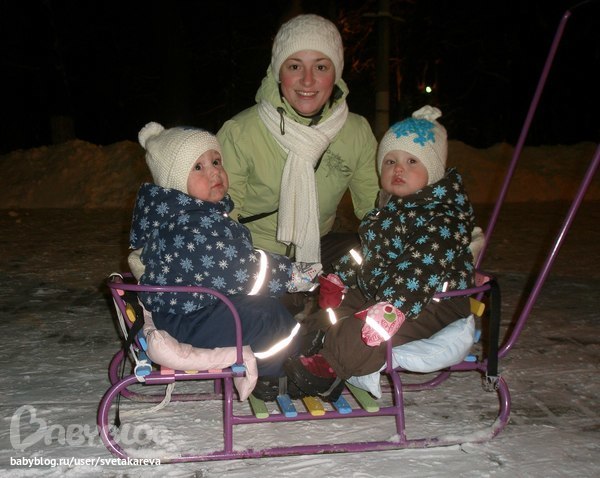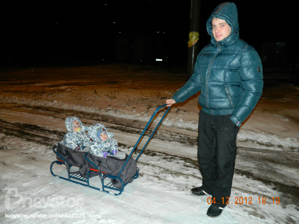 Первый раз - очень неудачно. Санки стояли у свекрови, а нам надо было в поликлинику. Утром встали..........а на улице снега по пояс! Потащила их на ТАКО. Потом нас папа встретил, помог дойти до места...у ушел. Вышли мы из поликлиники, машины все возможные выходы заставили, потащилась на большую дорогу, а там свекровушка моя бежит. Уговорила пойти за санками, пока шли Луказаврик уснул. У нее же стоит и наш Х-Lander. Сняла с него люльки-переноски, чехлы для ножек, пока все это отцепила, установила, детей уложила/усадила, можно было б наверно на Тако до дома доползти.... Пехали на санках. Везти их конечно по сравнению с коляской одно удовольствие!! Сиденья широкие, красота. Но!!! Марк заваливался на бок, ак когда проснулся Лука, я его усадила, только тронулась с места.....и он плюхнулся прям в сугроб лицом. Домой мы пришли через час.... я злая, уставшая... А вечером вернулся папа и мы решили пойти в гости к бабушке с дедом (моим родителям) опять на санках (все коляски перетаскали к свекрови).