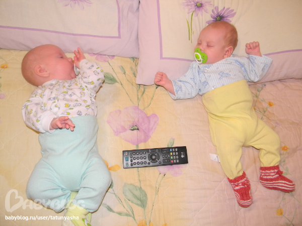 Особенно это радует нашего папаньку))А я вот не могу с ними спать.Мне надо на животе спать(так я сплю хорошо),а тут получится только на боку,если с ними спать.А мне так не нравицца))Да и Тимоха титю мою вообще не ест,так что с ним я вообще не сплю.А вот Лизу под утро беру к себе,она какая то мягкая,с ней удобно спать))))