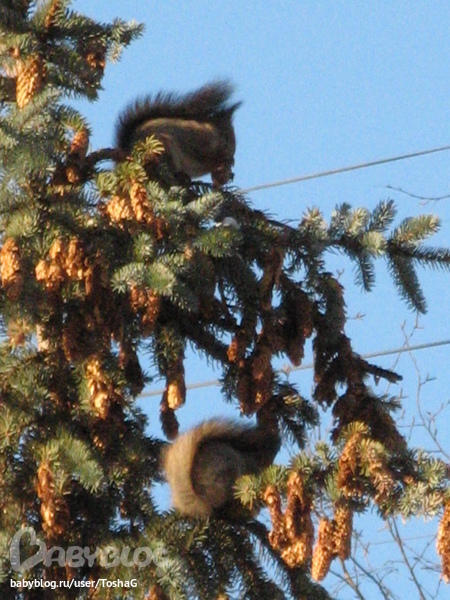 сейчас Дуняша уже выростила своих бельчат и они весело носятся по парку :)