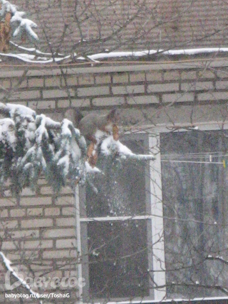 А эта та самая елка - в полный рост. Белки тоже видны. И угол дома моего.