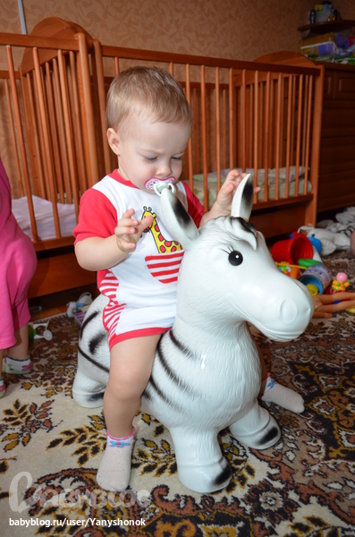Забавно, мы тоже почти до 2,5лет соску сосали (сынок). А потом сам порвал и выбросил, но так симпатично смотрится))). Ослов нам хватило на месяц (красного цвета и чуть большего размера), потом надоели - сейчас стоят в углу; пригождаются когда надо куда-то забраться, а стульчика рядом нет. Доча зовет ослика Бурушка - по мотивам мультика про соловья-разбойника.