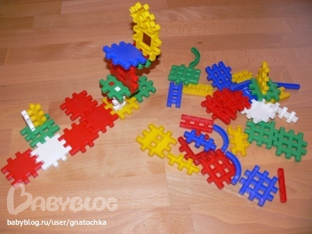 Такой конструктор только из больших деталей намс дарили на прошлый год, а потом я еще сама докупала из мелких как у вас. Правда пришллось выкинуть ннекоторые элементы,т.к они рабросаны были по всюду и я пару раз настюбала в спешке и ранилась. За совет большое спасибо
