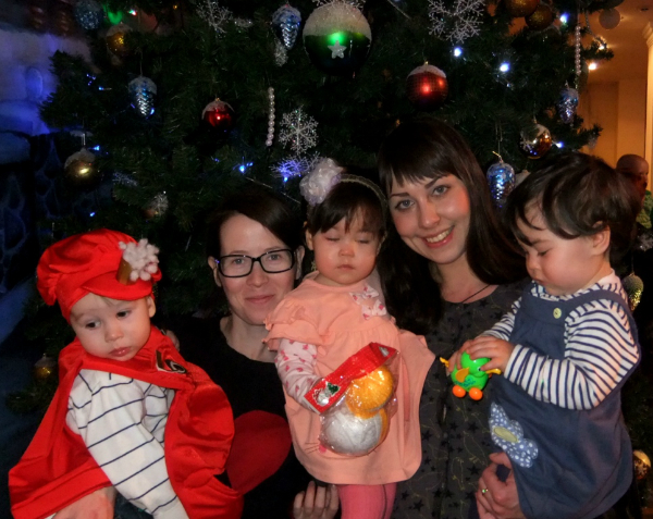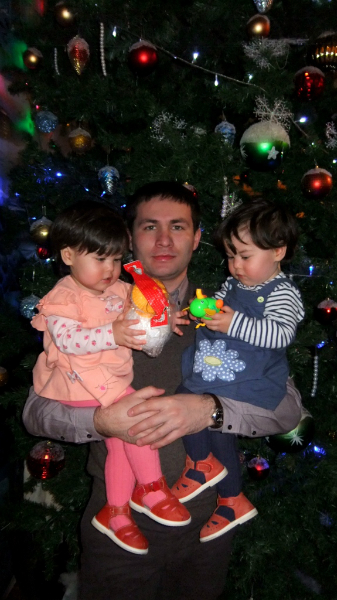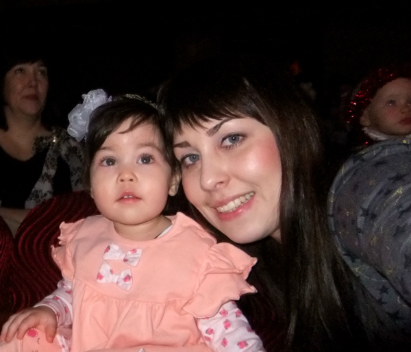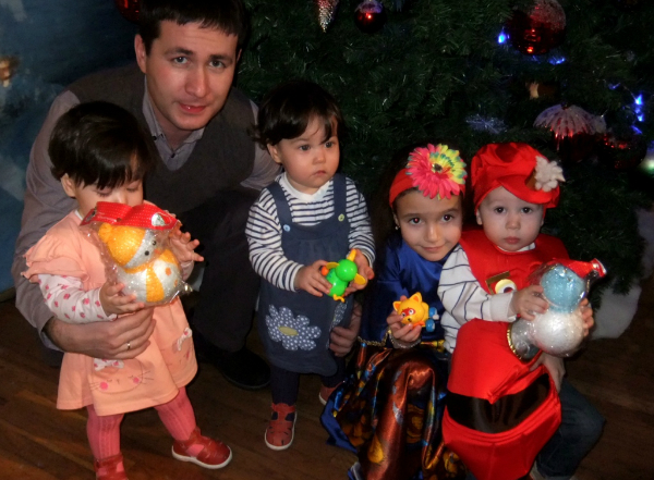 Потом мы пошли водить хоровод возле ёлки...девочек взяли на руки, т.к. дети в основном были по-старше и малышей затаптывали и толкали.., но получать подарки сами слезли с рук...