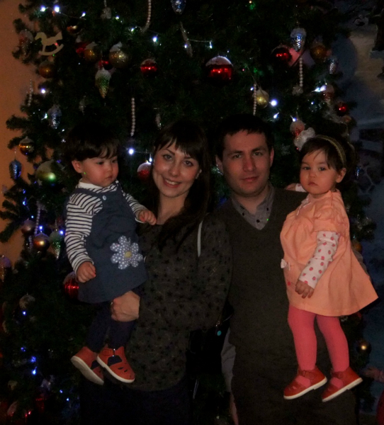 Возле ёлки...куда уж там в кадр посмотреть....заняты мы =)