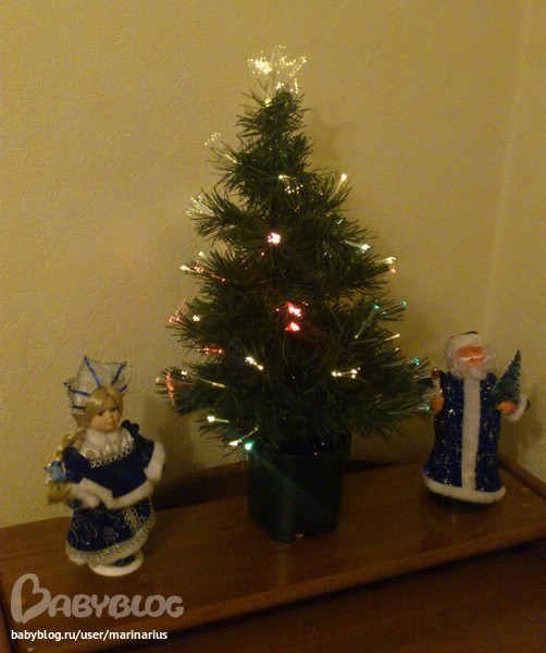 Поставили маленькую елочку на комод, мальчишки пока трепетно к ней относятся, подходят, аккуратно трогают веточки :-)
