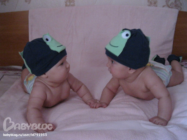Пупсы в шапках-лягушатках смешнулииии))) а на последней фотографии - кошка и собака? Или две кошки?