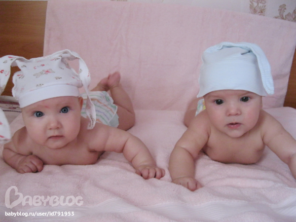 Малыши забавные, сразу видно где мужчина, такой везде серьезный! А барышня такая миленькая и голубоглазая ,интересно а цвет глаз у вас с мужем разный? У меня карие,у мужа светло голубые,а вот у двойни темно синие и серые,может еще поменяются ,незнаю!?:)
