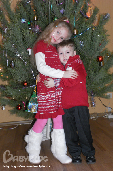 а вот это мы уже дома у своей ёлочки после фотосессии- Наши крестники с мужем