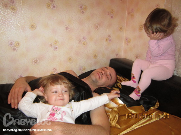 Вот,к примеру,папа прилег вздремнуть,девочки к нему...любят......