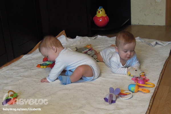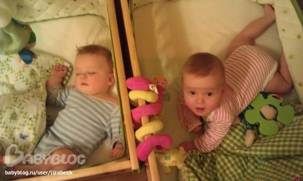 Как только дети начали поворачиваться и вертеться, то я их переселила на одеяло на пол, чтобы уже не думать о том, упадут они или нет (совсем давно жили на диване или на большой родительской кровати) и теперь они уже несколько месяцев ведут активную половую жизнь: