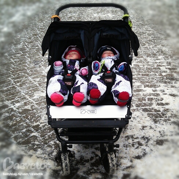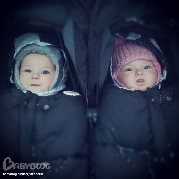 Гулянки продолжаем гулять в будни по 1-2 раза в день, вчера не гуляли, уж больно погода была совсем нелетная, гулять они очень любят, напрягает только то, что пока я первого упакую в зимнее мне уже жарко, а после упакованного вторго уже дурно и идти уже никуда совсем нет желания, и наступает тот момент когда нужно заставить себя вытряхнуться из квартиры, хотя все сборы на улицу занимают у меня 20 минут (это поменять подгузы, переодеть одежку, натянуть шапки, сапожки и варежки и все это засунуть в комбез и привязать к коляске, застегнуть мешки и умножить на два, а потом еще и самой одеть куртку и сапоги)