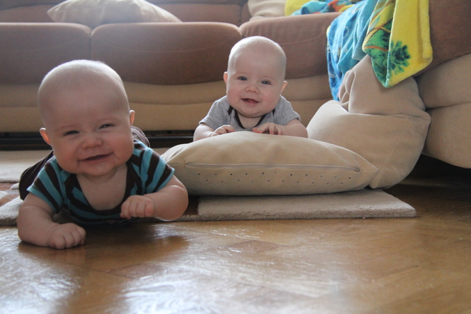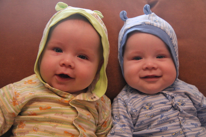 Двойняшки до 1 годаСегодня нам уже полгодика! Выросли мои мальчишки, на руках держишь, иногда прямо удивительно. У нас по два зуба, едим уже гречку с черносливом, цветную капустку, вчера пробовали картошку! Илья с удовольствием пьет светленький компот из сухофруктов (яблок), Лёвка кривится, словно ему кисло. И не пьет. Прикармливать начала в пять с лишним месяцев. Так же кормлю грудью, один-два раза днем докармливаю смесью.
