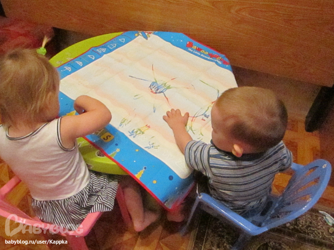 мне очень нравится - малыши рисуют, можно их оставить на пару минут и не бояться, что будут разукрашены обои, шкафы и все-все-все))