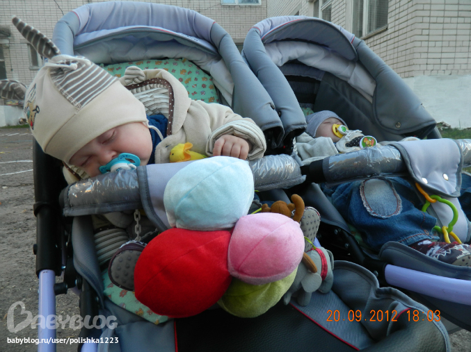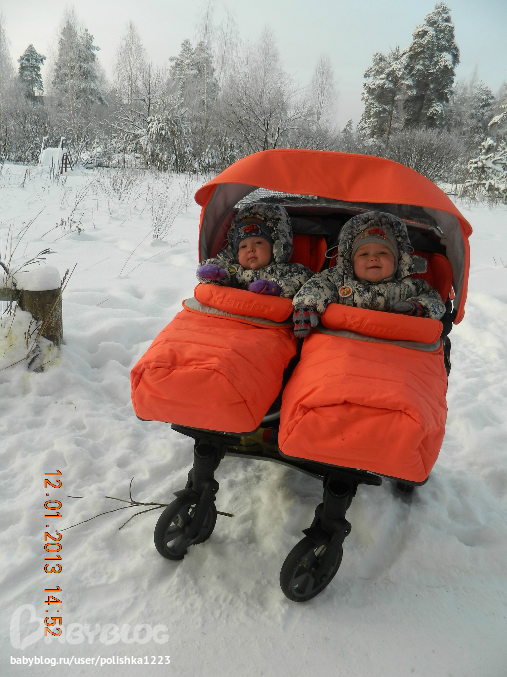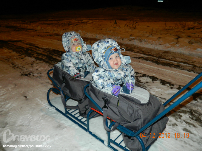 и осень, и начало зимы. Но по сугробам тягать этого монстра с двумя уже не маленькими бутусами стало тяжело и пересели мы на санки))