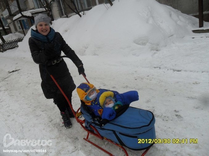 А это прошлой зимой -, наша коляска вместе с машиной в автосервис уехала,