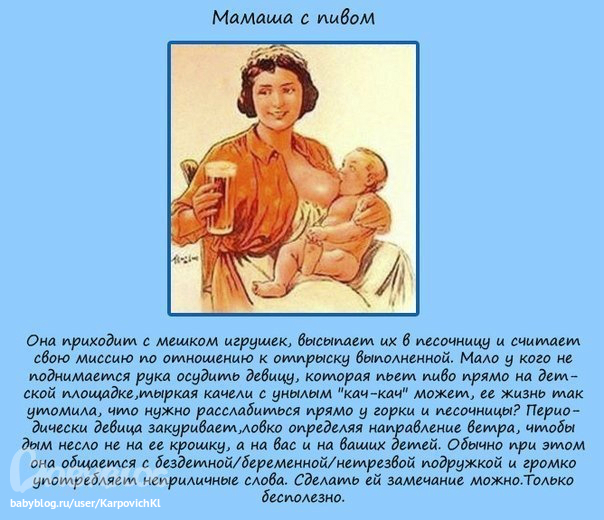 Позитив =)Ниже приведена классификация мам) вы себя к кому причисляете? Я к матери-ехидне конечно же))) как и многие,наверно) особенно мне понравилась мамашам пивом) очень жизненные виды мам)