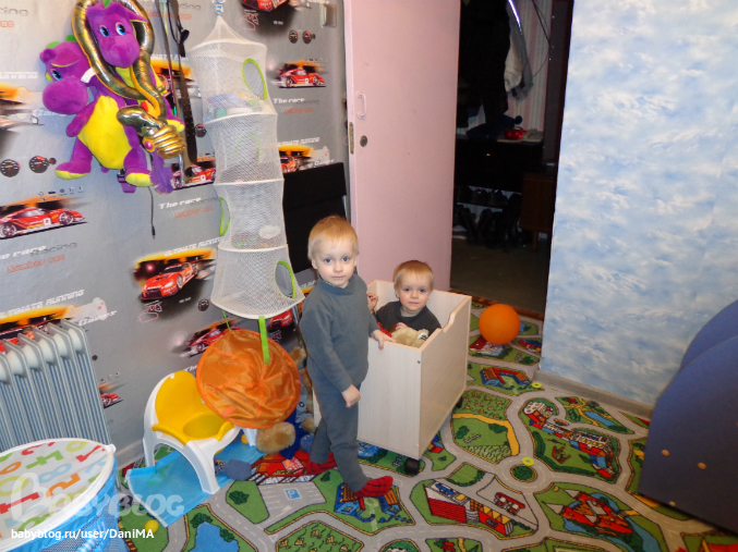 Моя малышня играется. Вытащили Ящик и давай катать друг дружку.